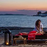 Agios Ioannis Diakoftis에 위치한 우아한 히피 시크 호텔은 미코노스 공항에서 5km입니다. 이 호텔의 레스토랑은 지중해 음식을 제공하며 바다 전망을 제공하며, 에게 해 옆의 해변가 위치를 자랑합니다.